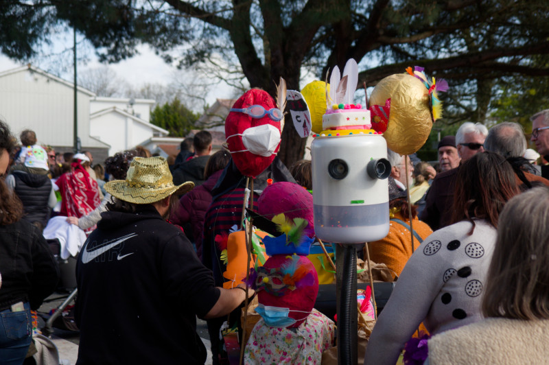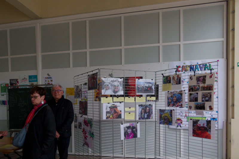 L’exposition, puis des images du défilé du carnaval de Cestas dans la ville
