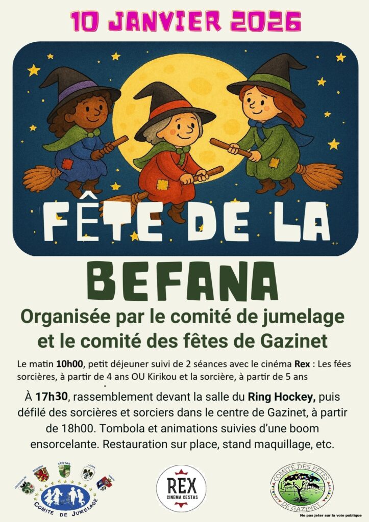 Actualités La Befana, samedi 10 janvier 2026 La fête de la Befana revient à Cestas Gazinet Flyers nature écologie vert et beige – 1